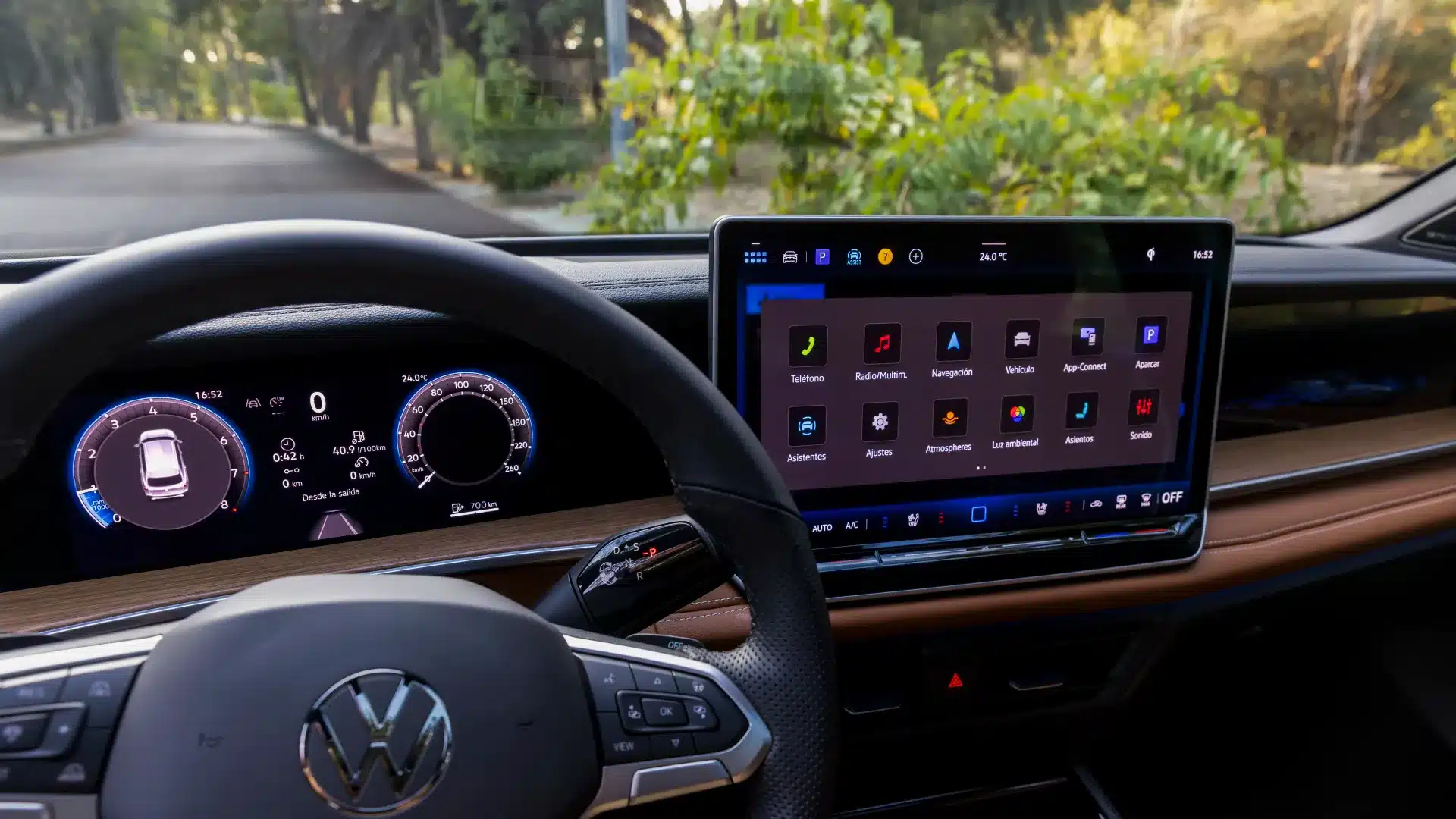 El Volkswagen Digital Cockpit Pro de 10,25" te permite acceder a información como velocidad, asistentes de conducción, temperatura, advertencias y funciones de infotenimiento, incluyendo detalles de la música que estás escuchando. Además, puedes personalizarlo según tus preferencias.