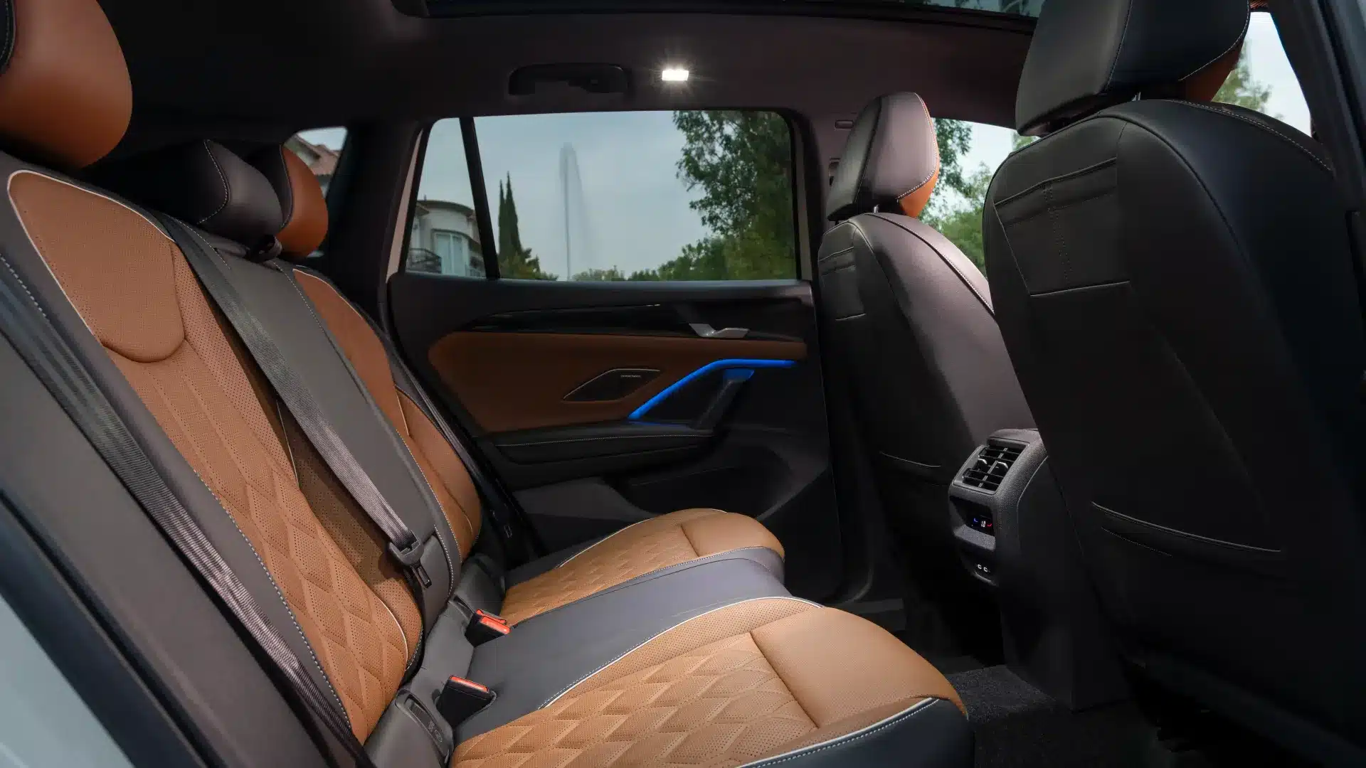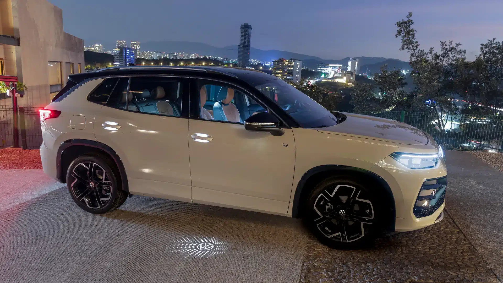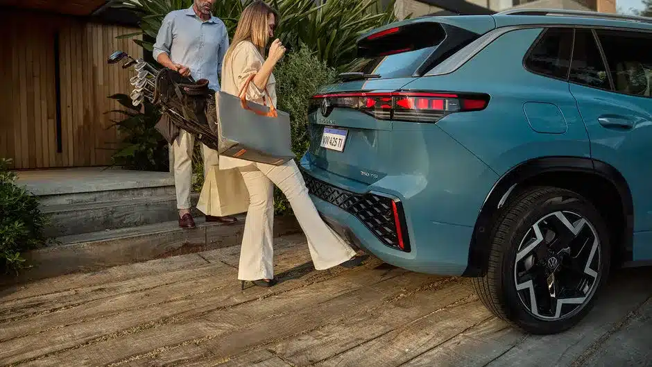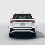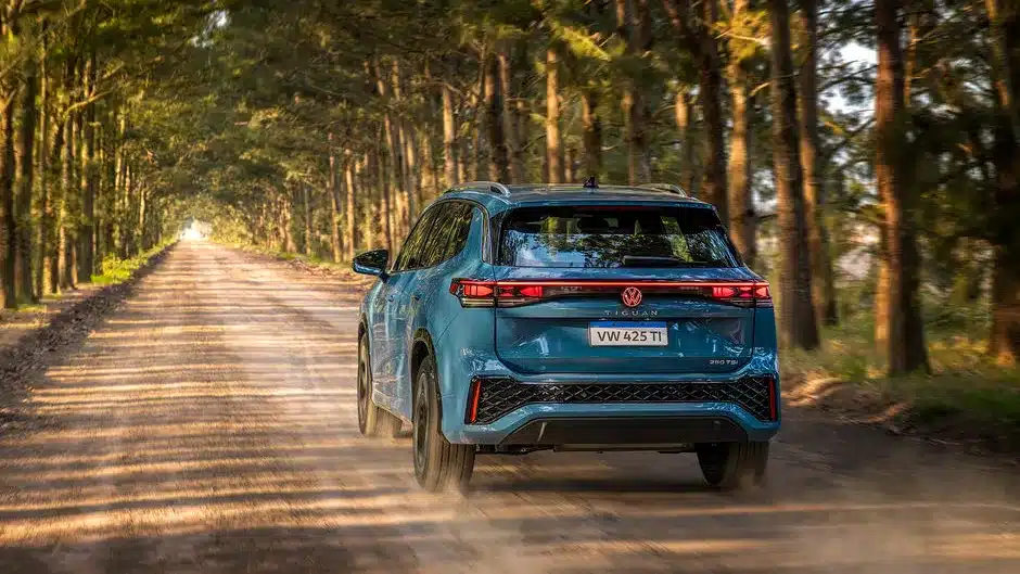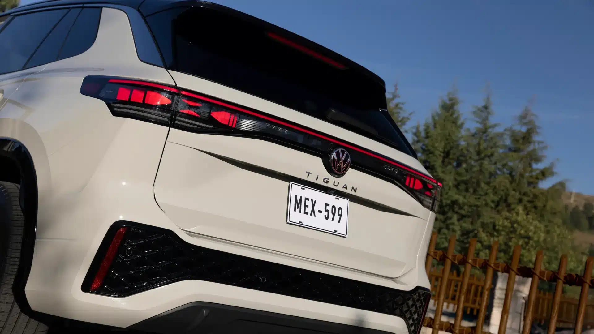 Firma nocturna La parte trasera del Nuevo Tiguan 2025 se destaca por un diseño sofisticado, con emblemas Volkswagen iluminados.